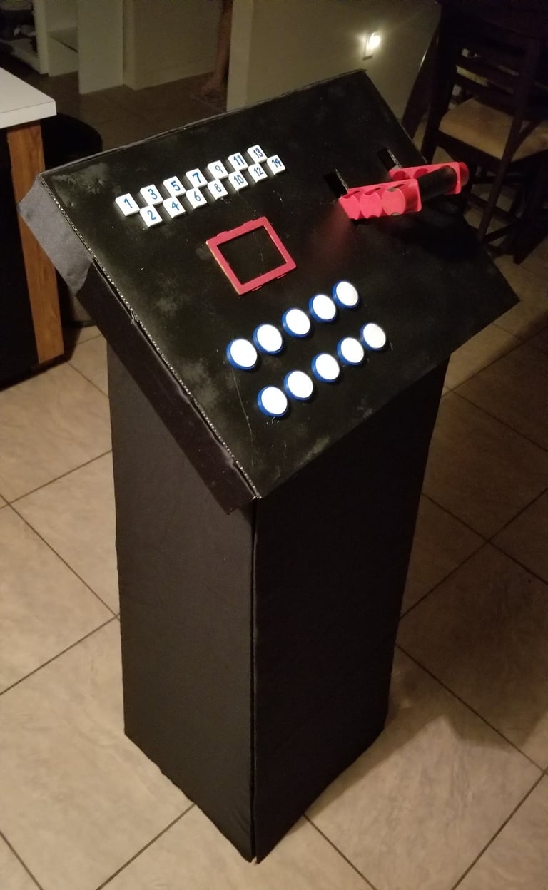 a set prop with fake buttons and moving lever